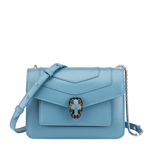 BVLGARI/宝格丽 22早春 新款SERPENTI FOREVER系列 女士蓝色小牛皮蛇首搭扣翻盖斜挎单肩包291310
