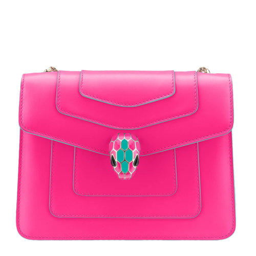 BVLGARI/宝格丽 SERPENTI FOREVER系列 女士中号桃红色纳帕皮革金色黄铜珍珠贝母扣单肩斜挎包290767