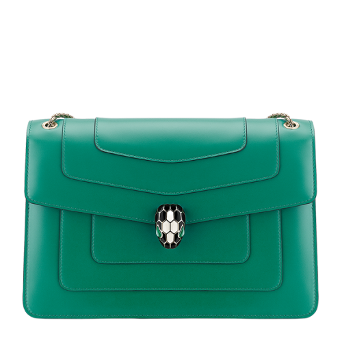 BVLGARI/宝格丽 女士牛皮红绿珐琅鳞片蛇头按扣翻盖金属链条单肩包手提包斜挎包链条包女包 28947 多色可选