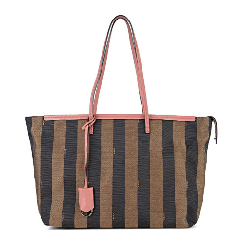 Fendi/芬迪 女士织物配皮经典条纹大号手提包单肩包