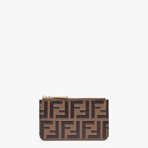 FENDI芬迪 22年春夏 女士 卡包 棕色皮革手拿包 8AP161AAFMF13VK