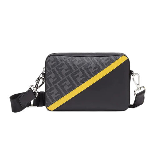 FENDI/芬迪 男士灰色老花织物黄色黑色皮革相机包斜跨手拿单肩包7M0286A9XSF0R2A