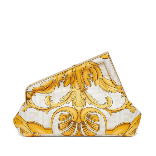 FENDI/芬迪 22新款First系列 女士Fendace联名款小号白色印花桑蚕丝超大F金属搭扣单肩手拿包8BP129AJQCF1EGP