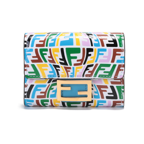 FENDI/芬迪 22春夏新款 女士银色层压小牛皮紧凑型三折徽标印花钱包8M0395AK61F0RXT
