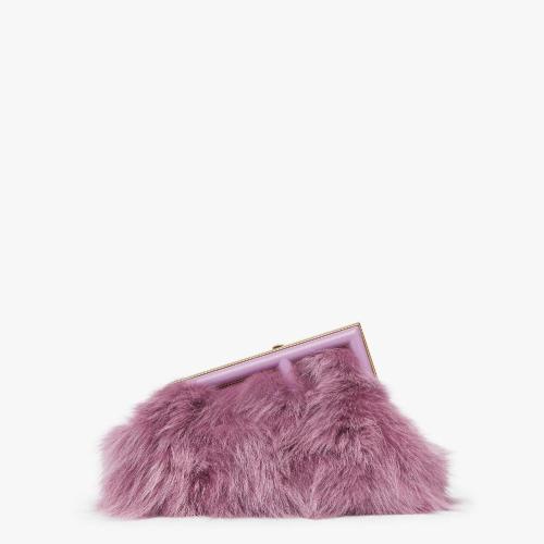 FENDI芬迪 22年秋冬 女士 手拿包 淡紫色狐狸皮草手袋 8BP129AL9EF1JSN