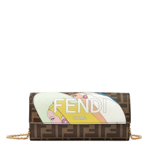 FENDI/芬迪 22春夏新款 女士深棕色双F老花链式Faces插画欧陆长款钱包8M0365AK5ZF1HB5