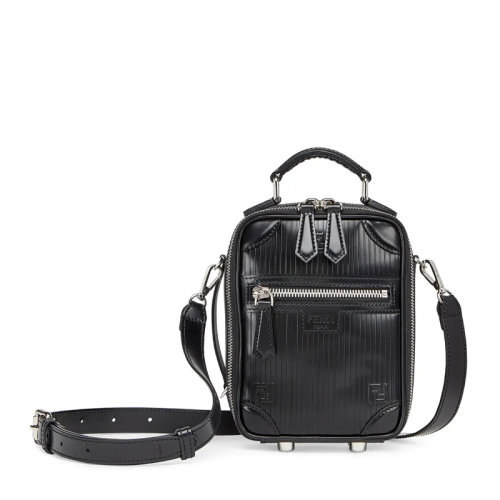 FENDI/芬迪 男士黑色小牛皮经典双F字母徽标压花装饰拉链开合迷你单肩包斜挎包手提包旅行包男包 7VA542-AG0R-F0GXN
