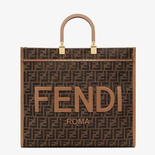 FENDI芬迪 22年秋冬 女士 手提包 棕色FF提花布料手提袋 8BH372ALVYF1GE3
