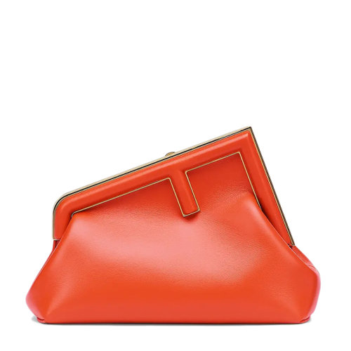 FENDI/芬迪 FIRST系列 女士小号红色纳帕皮革超大F金属搭扣单肩手提手拿包8BP129ABVEF0C3Q