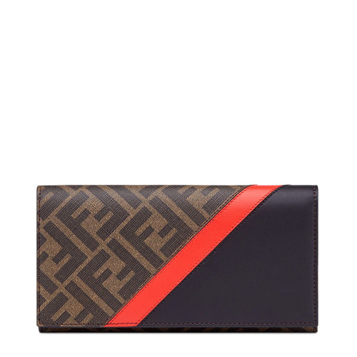 FENDI/芬迪 男士棕色FF提花织物黑色小牛皮红色调长型钱包7M0264A9XSF19P9