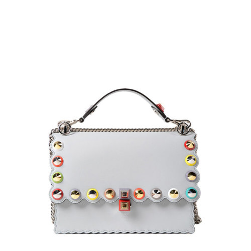 FENDI/芬迪KAN I系列女包 女士彩色铆钉装饰黑色牛皮翻盖单肩斜挎包手提包 8BT283A0V0F10XP