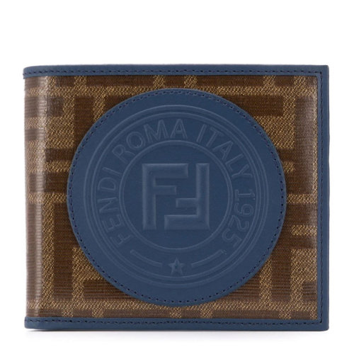 FENDI/芬迪 男士棕蓝色皮革双F圆形徽标经典FF印花短款钱包卡包男包 7M0169-A5K4-F1657