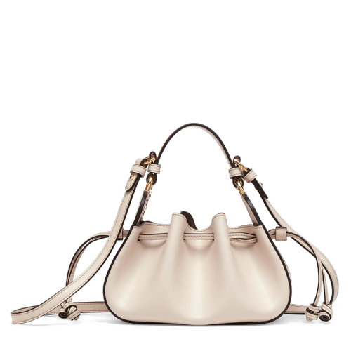 FENDI/芬迪 POMODORINO系列 女士迷你白色皮革全粒面材质抽绳开合配可拆卸肩带手提斜跨单肩包8BS059AHWUF0VWM