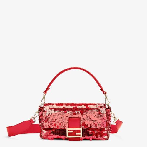 FENDI芬迪 22年秋冬 女士 单肩包 红色亮片和皮革手袋 8BR600AMP0F0V3L