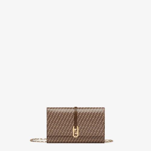 FENDI芬迪 22年秋冬 女士 钱包 米色皮革微型FF图案迷你包 8BS061AHM1F1FNK