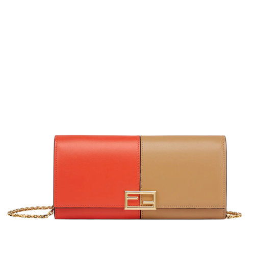 FENDI/芬迪 女士双色调红色米色皮革金色金属饰面单肩斜挎手拿链条长款钱包8M0365A1KSF1FVR