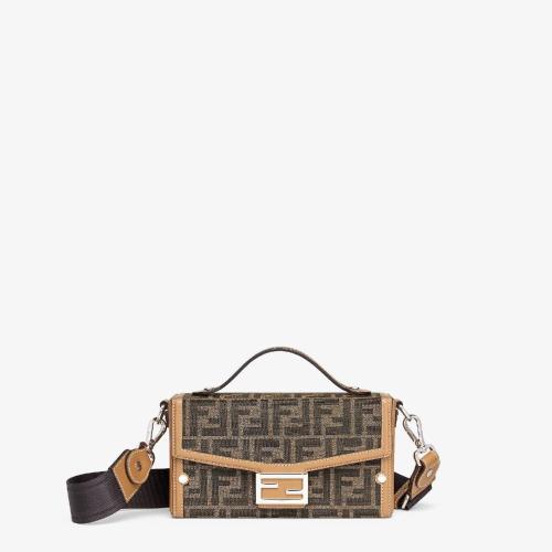 FENDI/芬迪 女士棕色TPU配皮双F印花金属徽标手提包单肩包女包 8BT284-A7T5-F0L95
