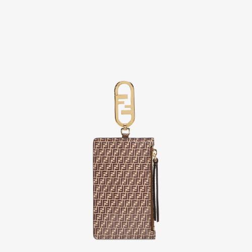 FENDI/芬迪 22春夏新款 女士棕色织物三槽零钱袋FF女孩插画卡夹8M0423AK5ZF1HB5