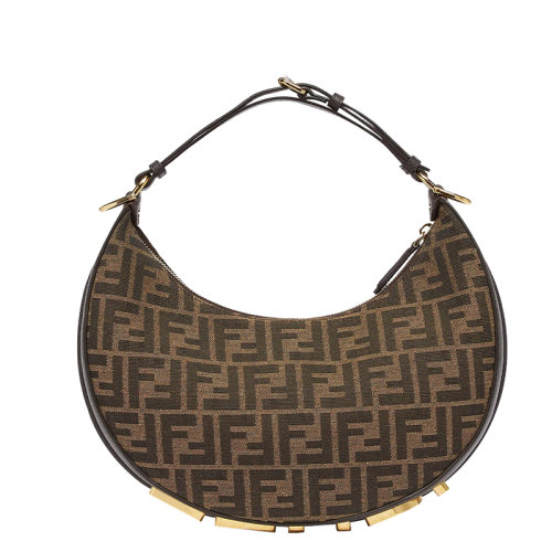 FENDI/芬迪 2022新款 Fendigraphy系列 女士小号棕色提花面料金色金属标志斜挎腋下包8BR798ALP3F1I02