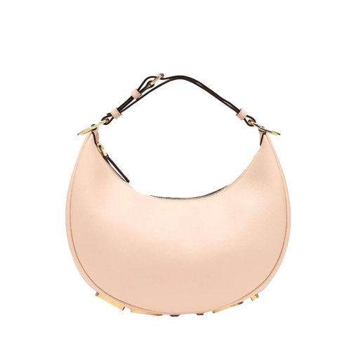 Fendi/芬迪 22年春夏新款Fendigraphy系列 女士粉色皮革复古金色金属徽标小号新月单肩斜挎手提包8BR798A5DYF1HD6