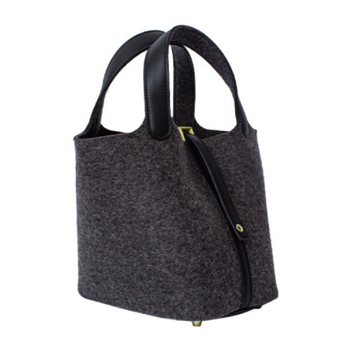 【主推】HERMES/爱马仕 经典款 黑色毛毡皮质 金扣 女士手提包Picotin18(配HERMES礼品盒)