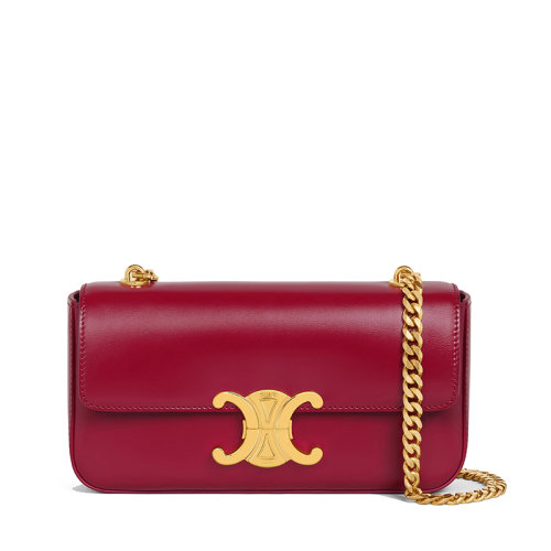 CELINE/赛琳 22新款TRIOMPHE系列 女士胭脂红缎面牛皮革凯旋金扣金链单肩斜跨链条包197993BF4.27CA