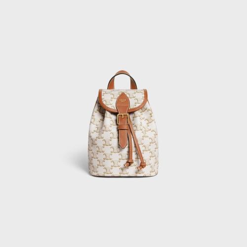 CELINE赛琳思琳 22年秋冬 女士 双肩包 FOLCO TRIOMPHE CANVAS标志印花和牛皮革迷你背包 19766