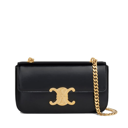 CELINE/赛琳 TRIOMPHE系列 女士黑色亮泽牛皮革金扣链条单肩斜挎包197993BF4.38NO