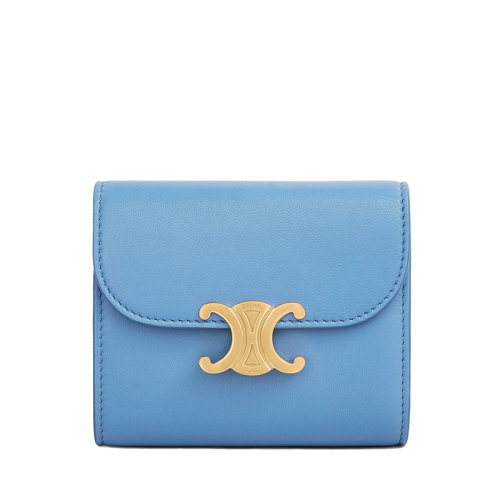 CELINE/赛琳 22春夏新款TRIOMPHE系列 女士小号天蓝色亮泽光滑羊皮革金扣钱包10D783BZG.07ZA