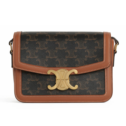 欧洲秒发 CELINE/赛琳 TRIOMPHE系列 女士凯旋印花帆布皮革衬里金扣翻盖斜挎单肩包194142CUZ.04LU