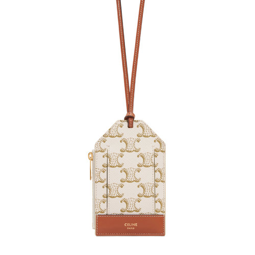CELINE/赛琳 男女通用白色老花凯旋帆布棕褐色皮革项链型卡包卡片夹10H852DB7.01TA