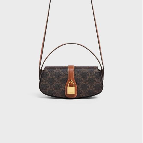 CELINE赛琳思琳 22年秋冬 女士 单肩包 标志印花牛皮革饰带手包 10I592DQ2.04LU