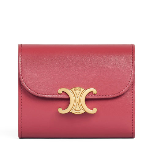 CELINE/赛琳 22新款TRIOMPHE系列 女士小号口红色亮泽小牛皮饰凯旋金扣折叠钱包10D783DPV.27LK