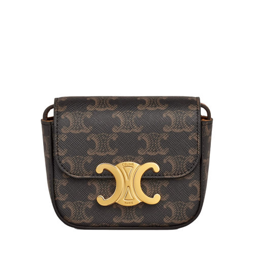 CELINE/赛琳 TRIOMPHE系列 女士迷你黄褐色凯旋老花涂层帆布金扣单肩斜挎手拿包10I512DQB.04LU