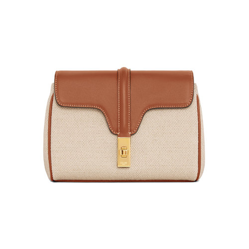 CELINE/赛琳 23春夏新款 女士迷你自然色/棕褐色织物配皮金色金属纽扣调节拆卸皮革肩带单肩斜挎包10L352ERI.02NT