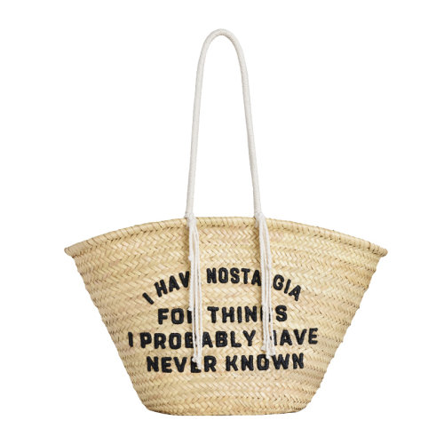 CELINE/赛琳 女士米色拉菲草复古怀旧刺绣流苏装饰双手提单肩包手提包购物袋女包 192712CGZ-38NO