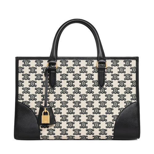 CELINE/赛琳 22新款TRIOMPHE系列 女士迷你黑色/白色织物配皮饰徽标刺绣配金锁皮革吊饰可拆卸肩带单肩手提托特包110432CS8.38NO