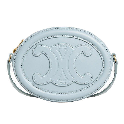 CELINE/赛琳 22新款TRIOMPHE系列 女士冰蓝色皮革同色系凯旋皮扣拉链开合单肩斜跨包10I703DPQ.07IC
