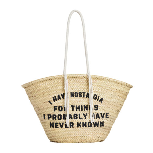 CELINE/赛琳 女士米色拉菲草复古怀旧刺绣流苏装饰双手提单肩包手提包购物袋女包 192712CGZ-38NO