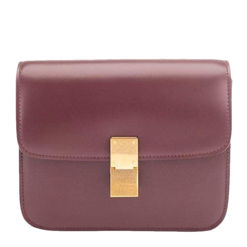 CELINE/赛琳 女士酒红色TEEN CLASSIC 抛光牛皮革豆腐包单肩包斜挎包女包 192523DLS多色可选