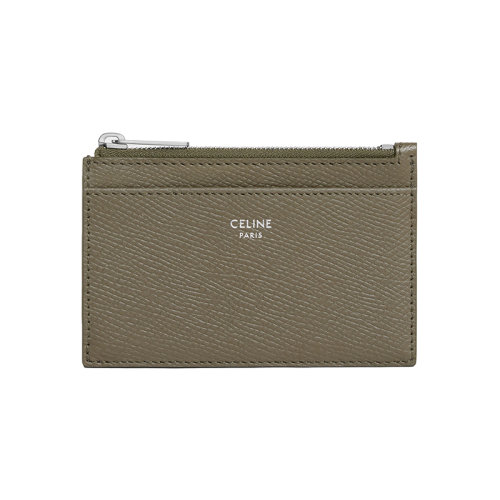 CELINE/赛琳 22秋冬新款 男士黑橄榄色粒面小牛皮拉链开合卡包10F993BEL.31DO