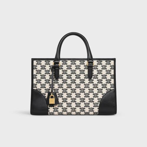 CELINE赛琳思琳 22年秋冬 女士 手提包 迷你CABAS TRIOMPHE刺绣织物牛皮革横款手袋 110432CS8.