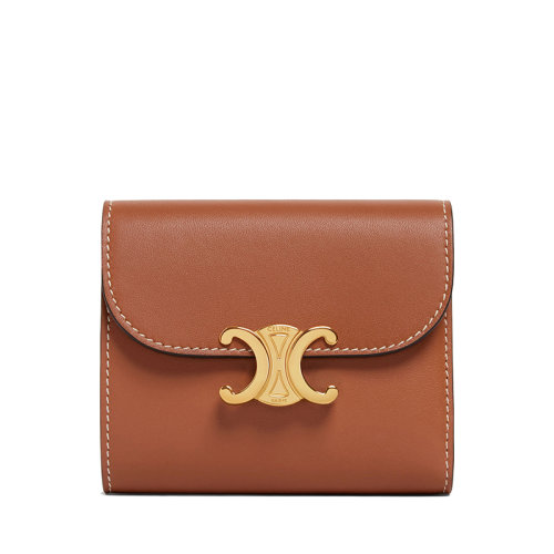 CELINE/赛琳 TRIOMPHE系列 女士小号黄褐色光滑小羊皮金色凯旋扣短款钱包10D783BZG.04LU