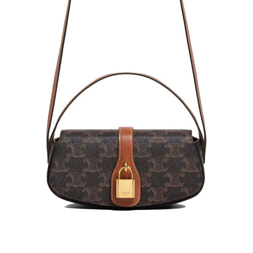 CELINE/赛琳 女士黄褐色老花凯旋帆布牛皮饰边挂锁装饰单肩斜挎包10I592DQ2.04LU