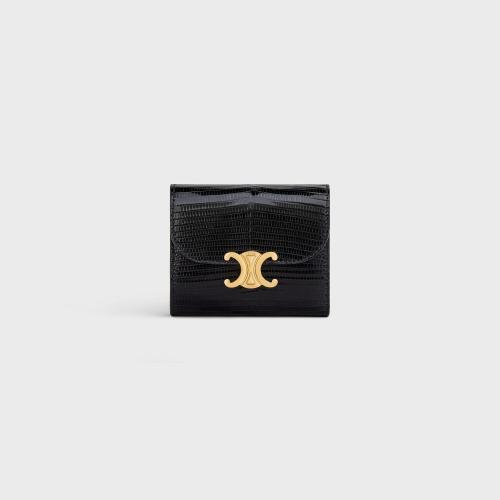 CELINE/赛琳 22新款TRIOMPHE系列 女士小号黑色牛皮革凯旋金扣三折钱包10D783DPV.38NO