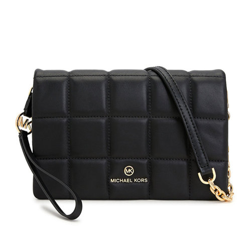 Michael Kors/迈克·科尔斯 女士黑色皮革经典字母徽标装饰编织款单肩包斜挎包女包 32T0GJ6C3L-BLACK