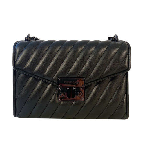Michael Kors/迈克·科尔斯 女士黑色皮质经典款翻盖皮质拼链条肩带时尚单肩包斜挎包