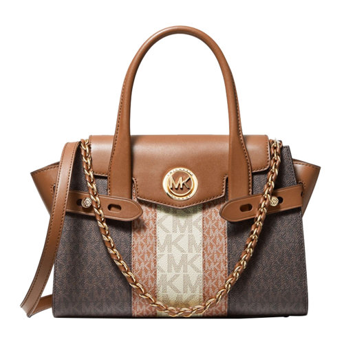 Michael Kors/迈克·科尔斯 CARMEN系列女士纯色皮革金色标徽可拆卸肩带吸扣翻盖开合单肩包斜挎包手提包女包 30T0GNMM0L 多色可选