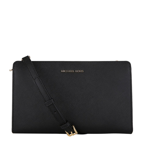 Michael Kors/迈克·科尔斯 JET SET TRAVEL系列女士黑色牛皮经典字母徽标装饰单肩包斜挎包邮差包信使包女包 30T2GTVM3L-BLACK