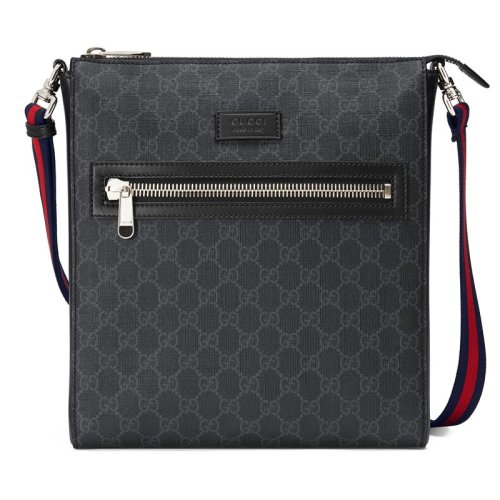 GUCCI/古驰 GG Supreme男士大号黑色帆布条纹织带斜跨邮差包 474137 K5RLN 1095